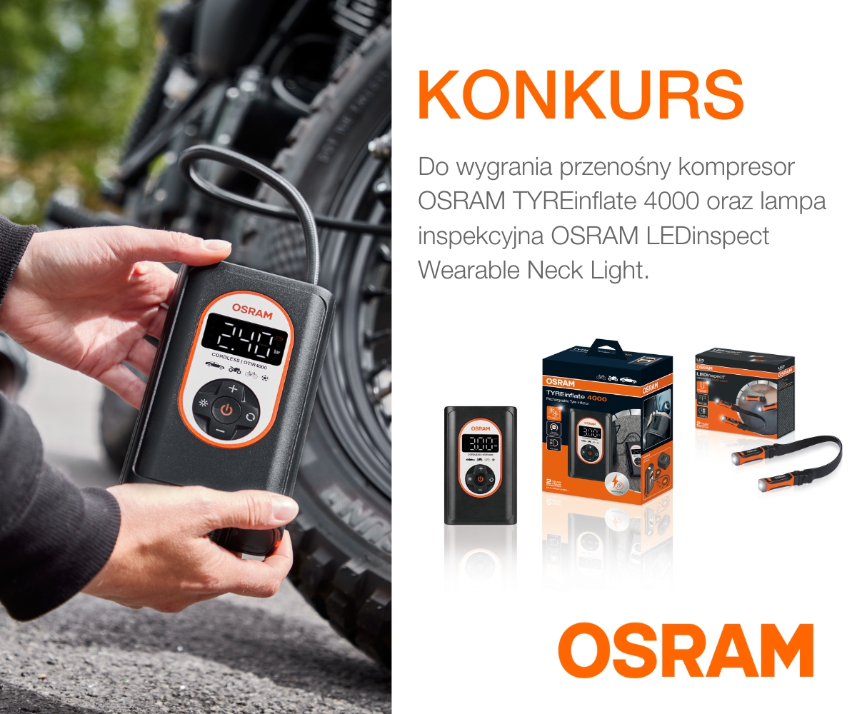 Dziękujemy za udział w konkursie, którego sponsorem została firma Osram. Aby zagrać, należało wykazać się wiedzą na temat produktów marki – kompresorów do konserwacji opon.